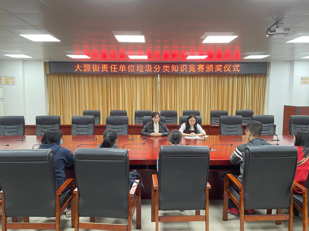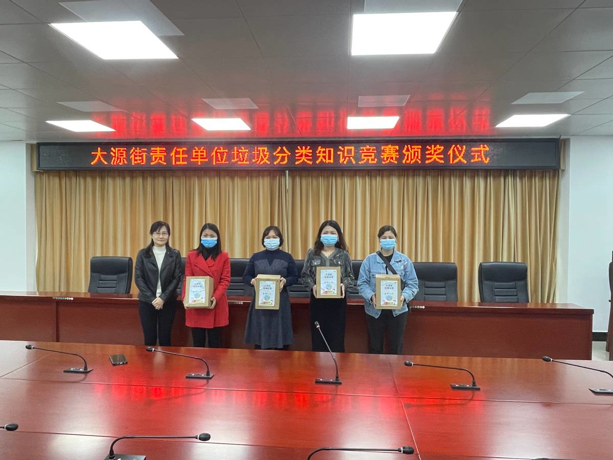 2021年1月27日,大源街市政所举行了大源街责任单位垃圾分类知识竞赛颁奖仪式,仪式上,市政所所长对各责任单位表示感谢,并为各获奖单位颁发奖品,一等奖获得单位共5家,二等奖获得单位共4家,三等奖获得单位共10家。获奖名单如下: