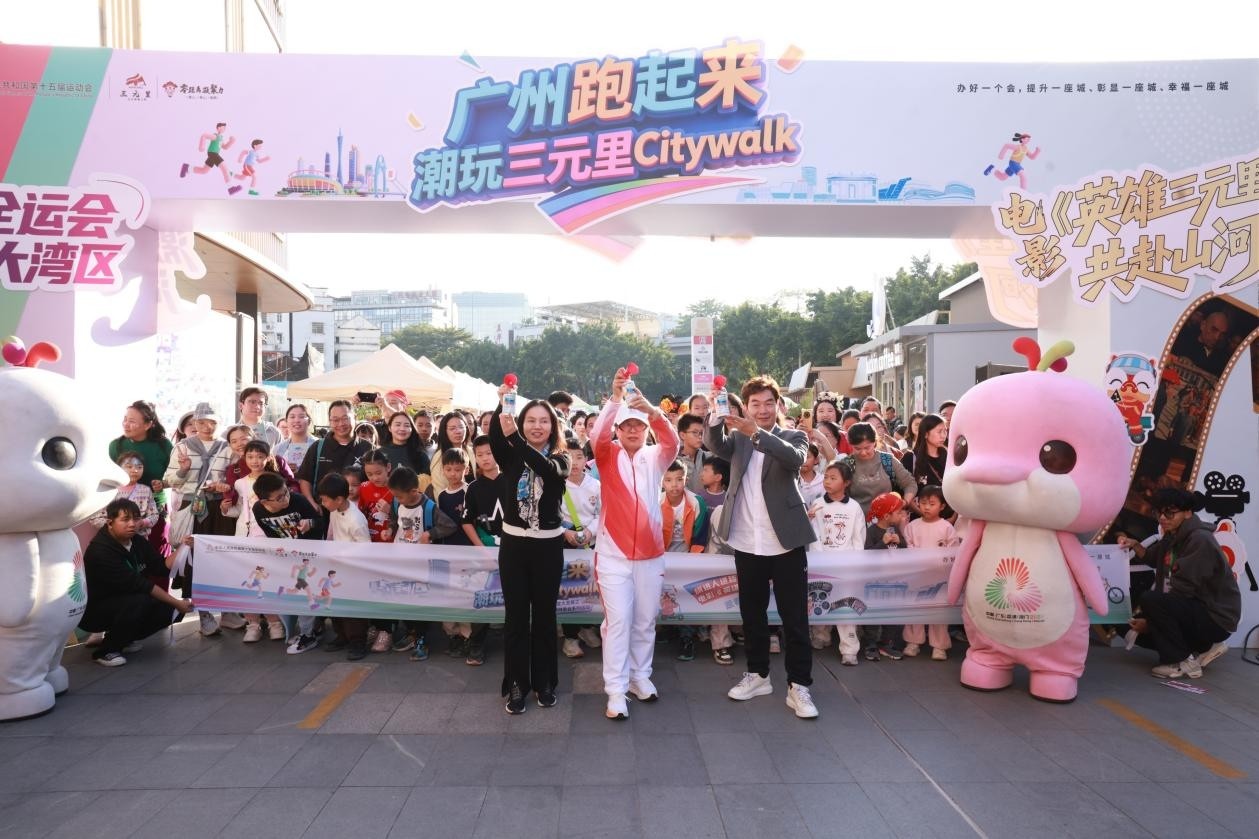 第十五届全运会火炬手、非遗传承人王娟女士现身分享,她讲述了全运精神与拼搏故事,并鼓励青年们积极参与运动,感受城市魅力。随后,在全运会吉祥物“喜洋洋”“乐融融”的引领下,600余名青年在鸣笛声中出发,开启了全程4.6公里的三元里Citywalk。