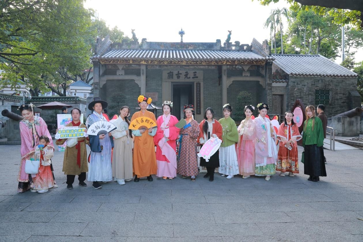 “旗进人进,旗退人退,打死无怨!”在三元古庙《英雄三元里》拍摄实景地,身着古装的NPC生动还原电影场景,一句句铿锵有力的台词,让青年们瞬间穿越到1841年那个热血沸腾的年代。大家纷纷与NPC创意摆拍,用镜头定格“英雄瞬间”,在朋友圈分享这场跨越时空的对话。