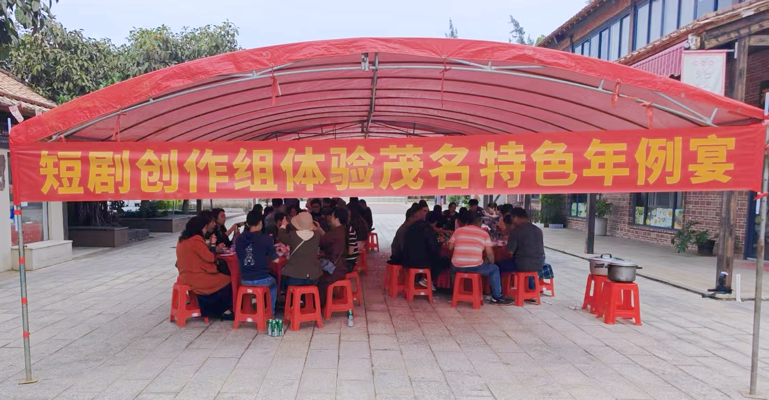 剧组在茂名圆满杀青,最后一场戏特意选在了疍家墟年例广场品尝充满烟火气的茂名年例宴。特色年例宴席铺开,红绸装点,白切鸡、水东芥菜、炸生蚝等地道美味纷纷上桌,香气四溢。演员和工作人员与当地居民围坐一堂,举杯共饮,品味茂名的特色年例宴,这不仅是一场茂名风味的舌尖盛宴,更是一次深度的非遗文化沉浸,让“年例”这一独特文化跟随着镜头,走向更远的地方。