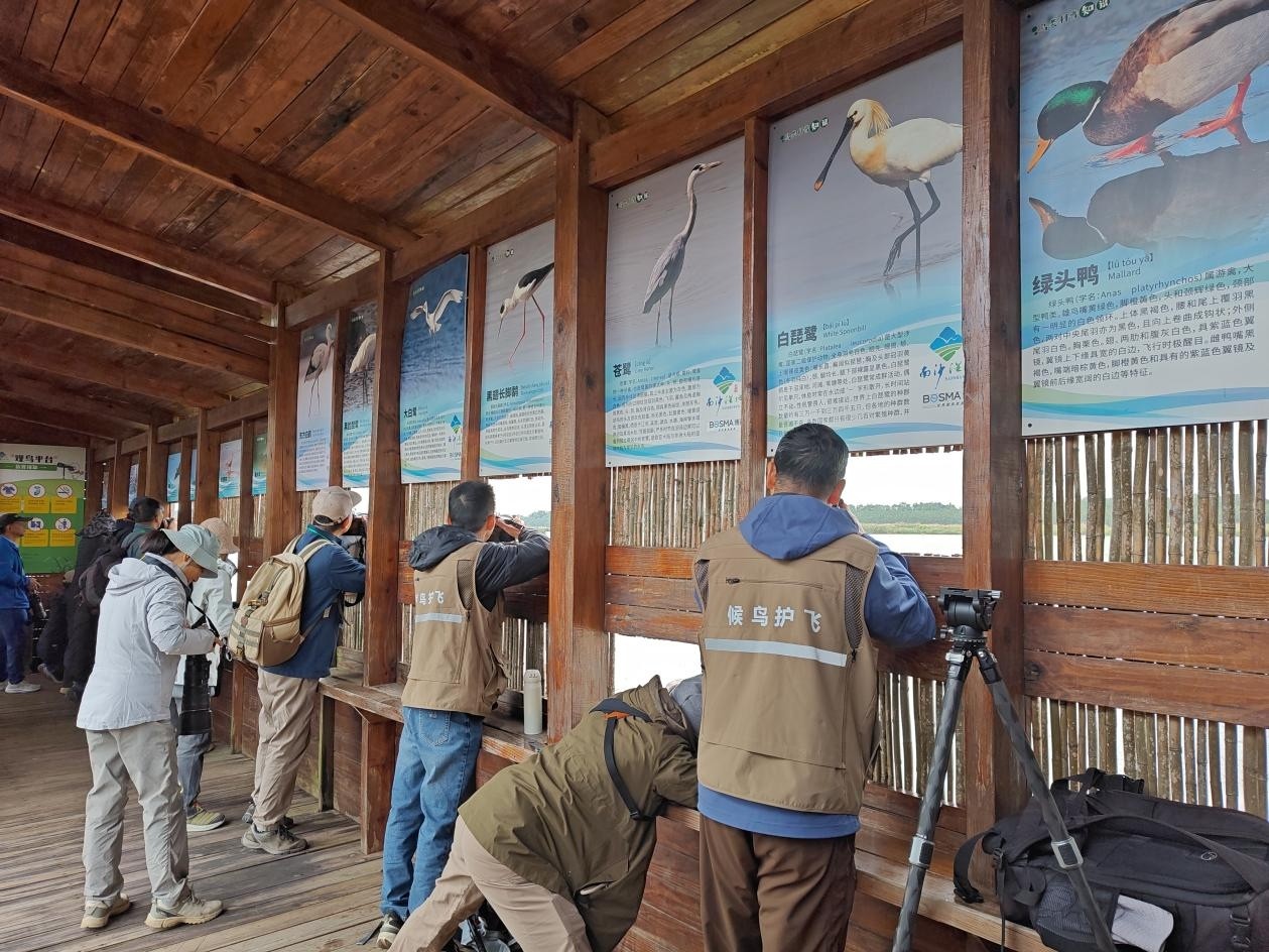 “快看,全都飞起来了,真美!”随着一句难掩兴奋的低声提醒,一阵阵快门按下的清脆声随即此起彼伏,与湿地中翩跹候鸟的欢快鸣叫声,交织成人与自然和谐共生的生动乐章。