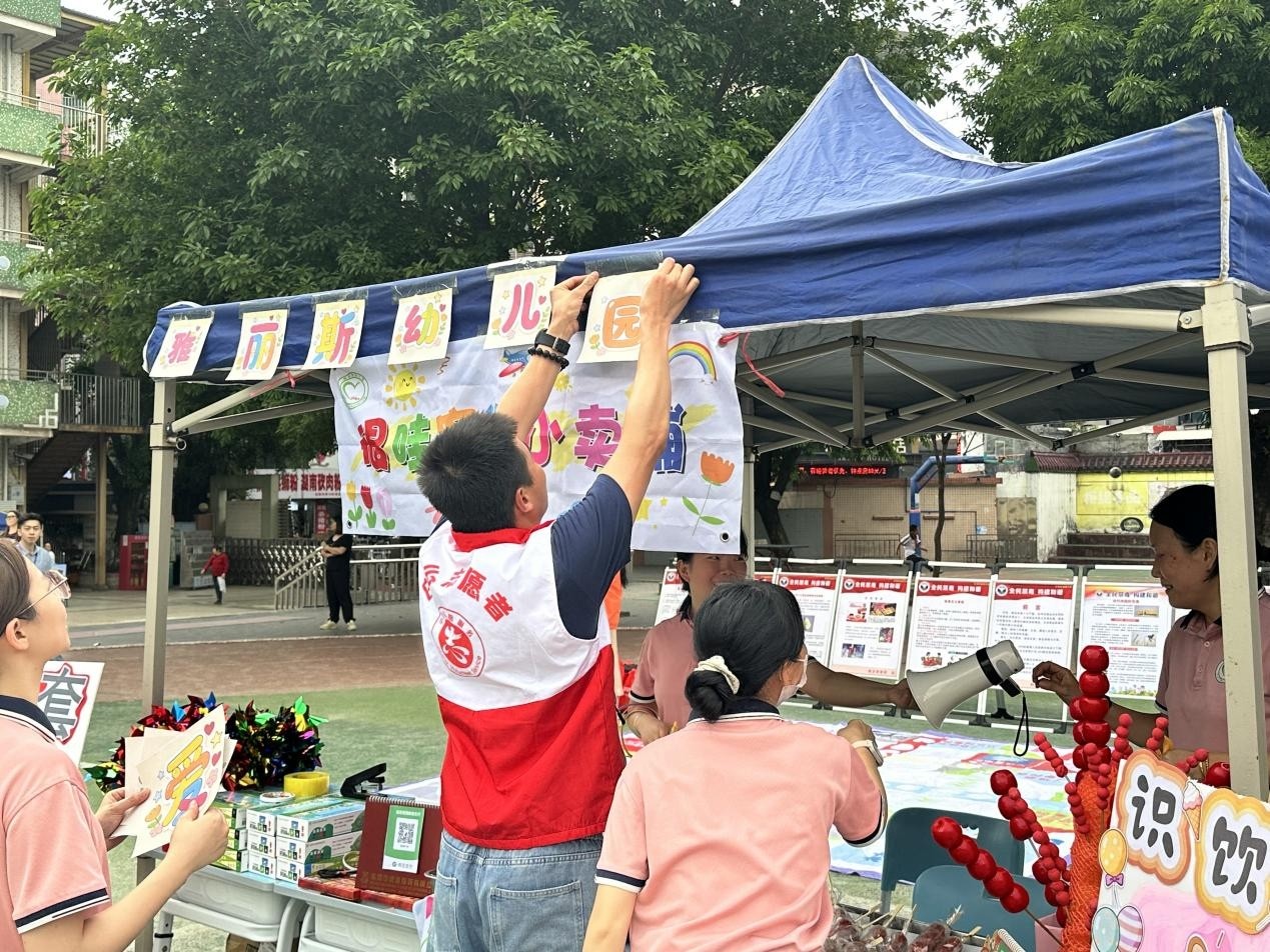 多方联动,社区合伙人携手志愿服务队伍奏响共建“大合唱”,是本次活动的核心亮点。活动深度践行鹤龙街社区合伙人机制,联动广东社区网、学车一族、东莞银行、鹤龙街社会心理服务站等多家社区合伙人,打破单一服务壁垒,与志愿力量同频共振、协同发力,将优质社区服务与公益爱心搬进学校,打造出集爱心义卖、趣味打卡、公益推广于一体的校园盛会,这也是联边片区深化“党建引领+居民活动+社群服务+合伙运营+多元共治”社区运营体系,以志愿服务赋能基层治理的生动实践。