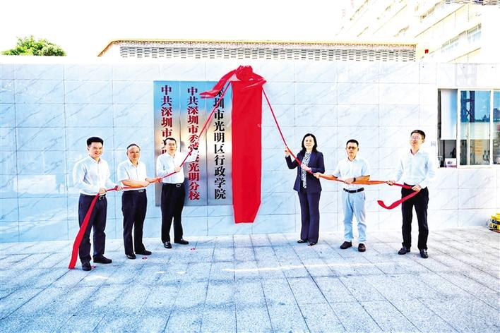 7月12日下午,深圳市光明区社会主义学院揭牌仪式在光明区委党校举行。深圳市市委常委、统战部部长王强,深圳市市委统战部副部长、深圳市民宗局局长王子建,深圳市光明区区委书记、区长蔡颖,深圳市光明区领导覃敬腾、曾无非、张锋出席并为社会主义学院揭牌,深圳市市委统战部有关处室、深圳市光明区有关单位负责人及深圳市光明区各民主党派、工商联、无党派人士、统战团体的负责人参加活动。
