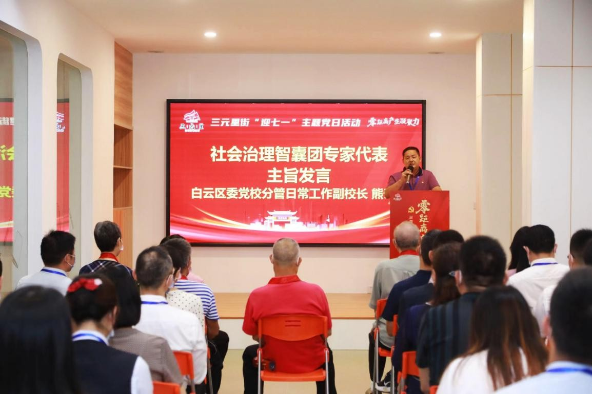 2022年6月22日,白云区举行社会治理智囊团专家聘任仪式暨专家研讨会,聘请了白云区社会治理智囊团专家12名。而在本次三元里街“迎七一”主题党日活动上,三元里街也紧跟聘请了社会治理智囊团,成为白云区首个聘请社会治理智囊团的镇街。