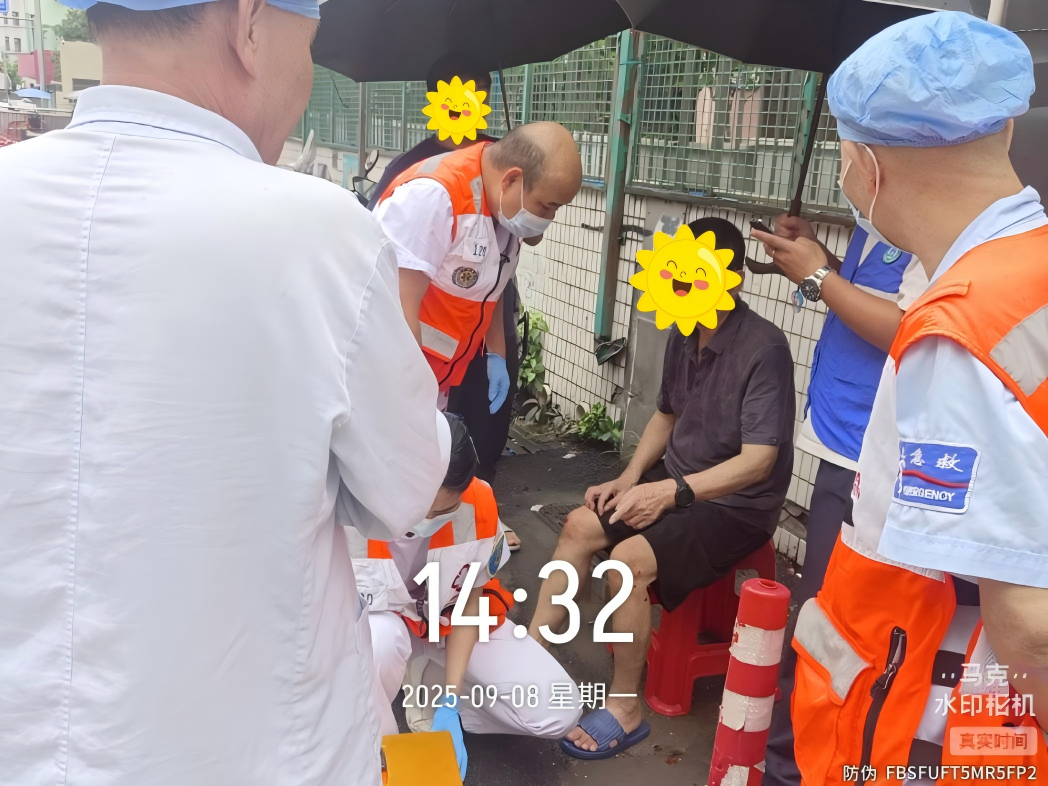 此时,另外两名正在附近巡查的网格员严家俊和陈景汶注意到这一情况,迅速赶来协助。为高效沟通,李启贤口述现场情况,严家俊则拨打120急救电话,清晰说明了老人的状况、事发具体位置及周边环境特征,确保救援人员能够快速准确到达。同时,陈景汶快速跑向周边商铺借来一张凳子,大家协力搀扶老人坐下休息。待老人稍事缓和后,他们通过老人随身携带的手机联系上其家属并告知情况。