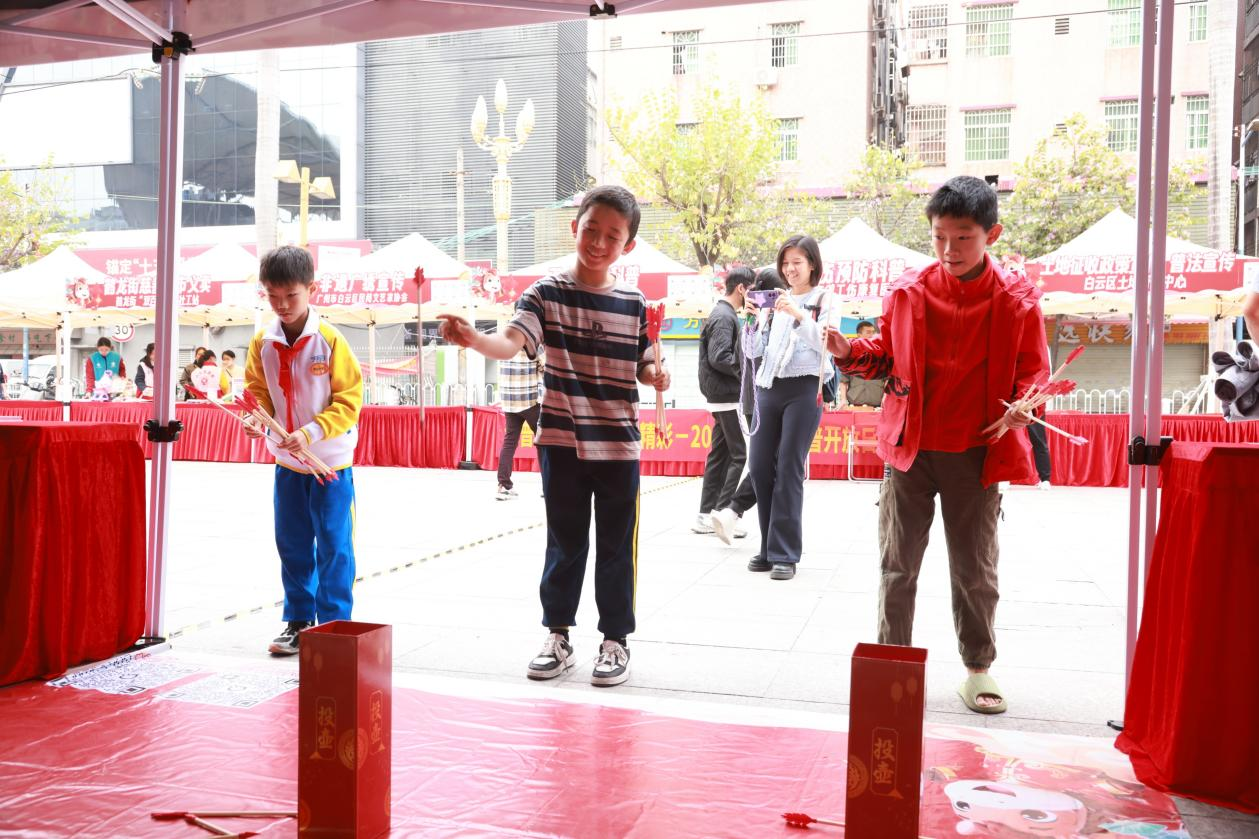 笔墨传情送祝福,民俗喜乐润人心。活动邀请白云区书法家协会副主席朱盛新、程磊、涂林聪,白云区书法家协会副秘书长肖建富等4位知名书法家现场挥毫,一幅幅饱含吉祥寓意的挥春,承载着新春期许送到居民手中,笔墨飘香间,满是邻里相聚的欢喜,也让中华传统文化在欢乐氛围中得以传承。迎春游园会更是欢乐爆棚,5大互动游戏前人头攒动,灯谜问答的思索、红包拓印的欢喜、投壶纳福的雀跃、钓锦鲤的期待、福气套圈的欢呼,交织成最动听的新春乐章;12个服务摊位各具风采,街道多部门、医疗机构、社会组织等多方联动,既带来工会法律服务咨询、紧急救护、消防安全、工伤预防、平安法治等便民科普,也通过非遗广绣、漆扇制作、糖画展演等形式,让居民在动手体验、观赏品鉴中,近距离感受传统民俗魅力,收获满满的欢乐与惊喜。