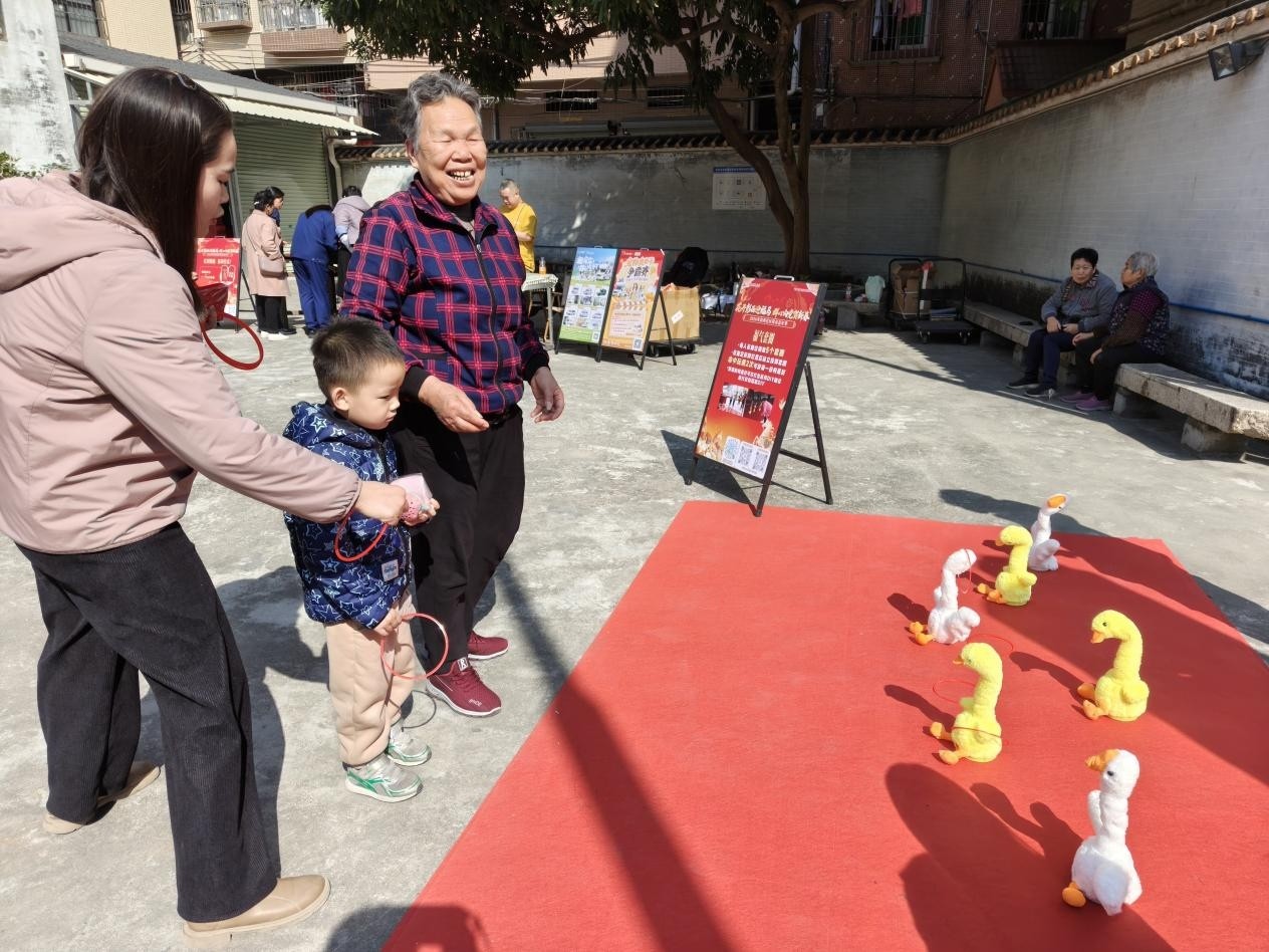 趣味十足的互动环节同样人气爆棚。福气套圈摊位前,大人小孩轮番上阵,瞄准目标轻轻一掷,套中的欢呼声与未套中的惋惜声此起彼伏,成功套圈的居民手持领到的利是封,笑容格外灿烂。紧邻的红包拓印摊位前,孩子们在家长的陪同下,亲手拿起拓印工具,在空白利是封上印出吉祥纹样,一个个独一无二的DIY红包新鲜出炉,承载着孩子们对新春的憧憬。“这个拓印活动特别好,既能锻炼孩子的动手能力,又能让他们感受传统年味,还能把自己做的红包带回家,孩子开心得不得了。”带着孩子参与活动的张先生说道。